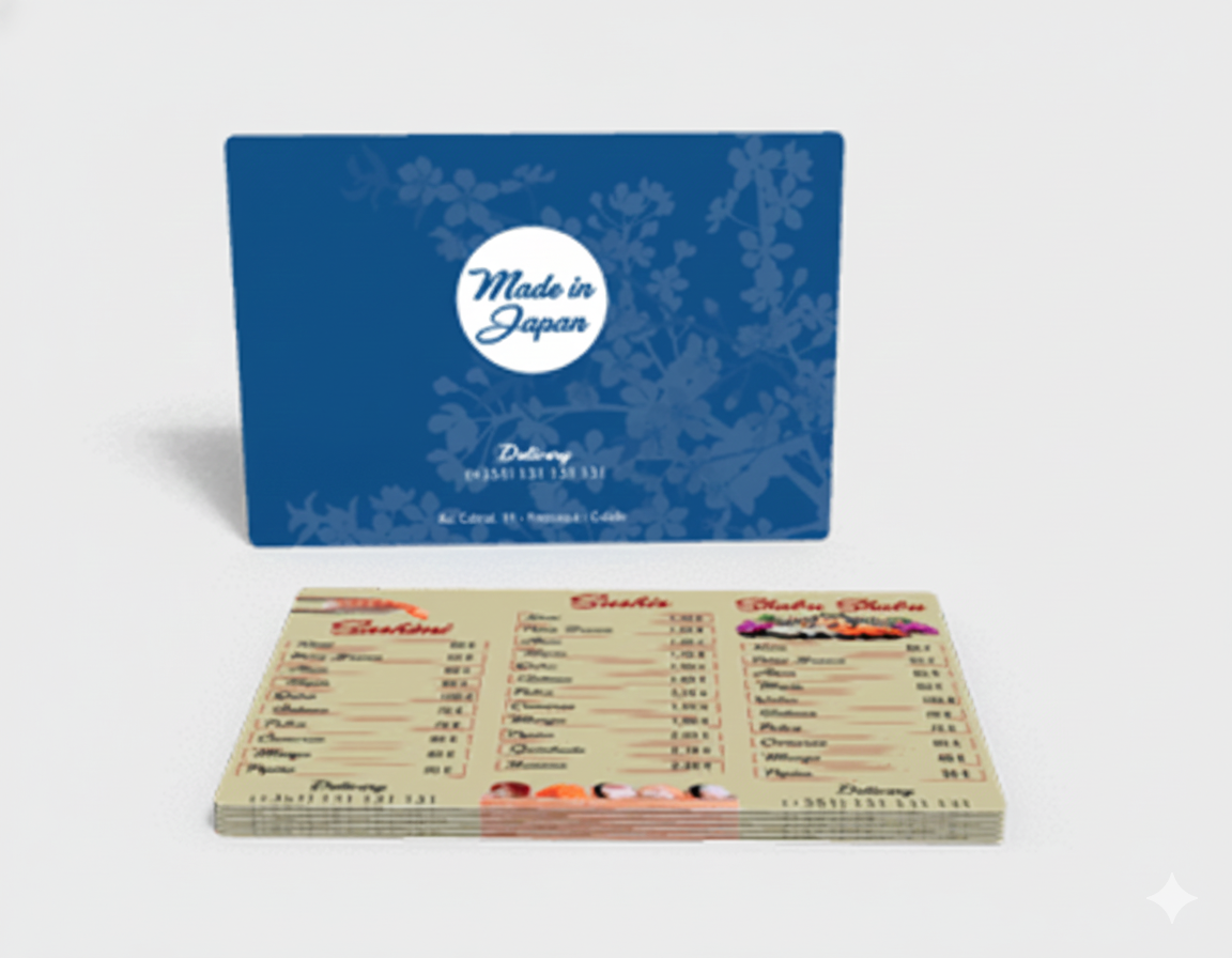 O Cardápio PVC é uma solução versátil e atrativa para os clientes finais. Ele ocupa pouco espaço, é prático de usar e possui aparência moderna e sofisticada.